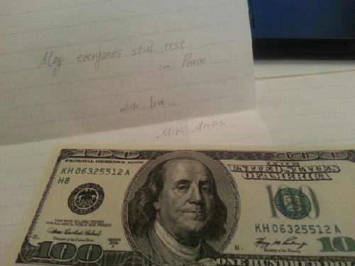 안도 미키를 인터뷰한 강재훈 KBS 기자는 26일 트위터를 통해 "KBS의 취재요청에 흔쾌히 응해준 일본 피겨스타 안도 미키. 인터뷰 끝나고 매니저를 통해 봉투 하나를 보내왔다. 안에 든 건 자필 편지와 미화 1000 달러. 세월호 희생자들을 위해 전달해달라며"라고 밝혔다.