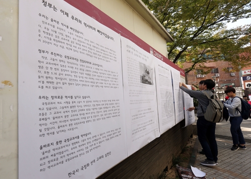 한양대 총학생회도 이날 성명에서 "국정교과서로는 다양성을 추구할 수 없다"면서 "상식적으로 8종 교과서가 구현하지 못하는 다양성을 1종 교과서로 실현하겠다는 논리 자체가 설득력이 없다"고 질타했다.