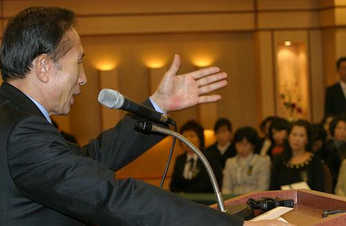 그는 노무현 대통령의 재정운영을 최악으로 평가한 동시에 자신의 서울시장 재임은 "건국이래 최고"리고 자임했다. ⓒ김동현 기자