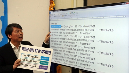 안 위원장이 공개한 KT IP 3개는 앞서 공개한 SKT IP 5개, PC IP 2개 등 해킹 의심 정황 IP와는 전혀 새로운 주소로 2013년 7월 21일과 8월 20일 사용됐다. 해당 IP는 기업이 사용하는 주소였다.