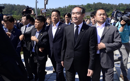 박승춘 보훈처장은 이날 광주 5.18 기념묘지에서 열린 공식 기념식 행사에 참석을 하기 위해 오전 9시 57분께 황교안 국무총리와 함께 행사장에 들어섰다.