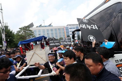 몸싸움 끝에 버스가 간신히 출발한 이후에도 상복을 입은 일부 군민들은 상여를 메고 곡소리를 내며 한참을 버스 뒤를 따라 행진을 벌였다.