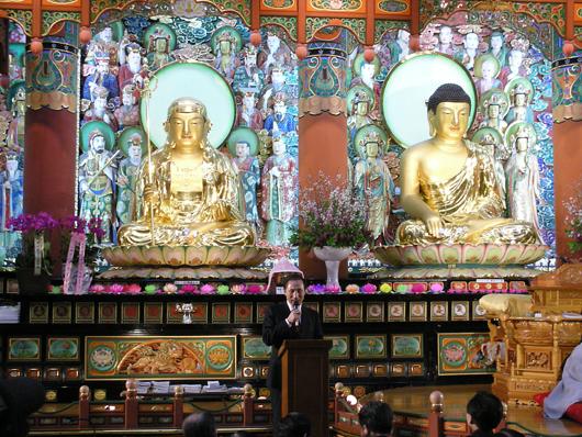 이명박 전 서울시장은 처음으로 불교계에서 특별강연을 열어 눈길을 끌었다. ⓒ김동현 기자