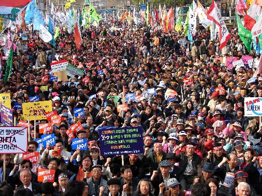 “정부가 한미 FTA를 강행할 경우 96년 노동법 개악 대투쟁 이후 사회전반을 아우르는 최초의 범국민적 저항을 겪게 될 것이다.”