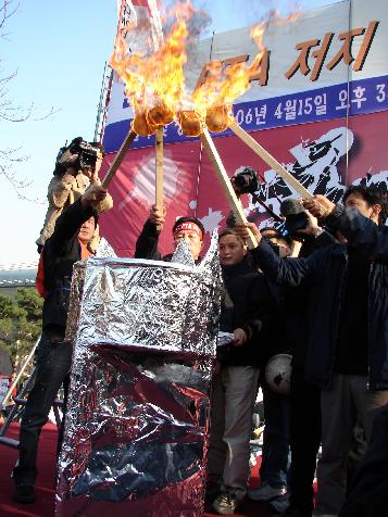 이후 참석자들은 공동결의문 낭독과 범국민투쟁의 시작을 알리는 봉화를 피우는 상징의식을 끝으로 본대회를 마무리 짓고 5시 30분경 가두시위에 나섰다.