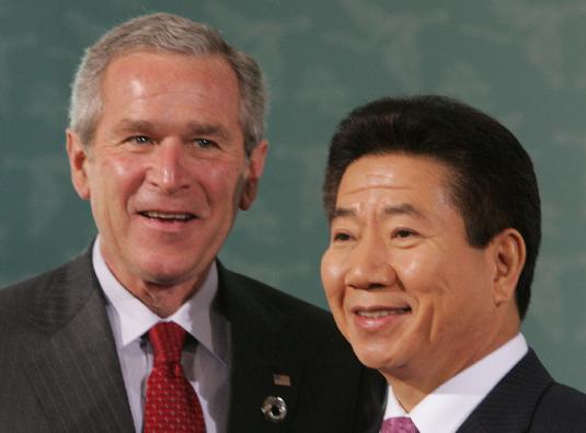 노무현대통령과 부시 미대통령이 한미FTA로 밀월관계를 맺을지 주목된다. ⓒ연합뉴스