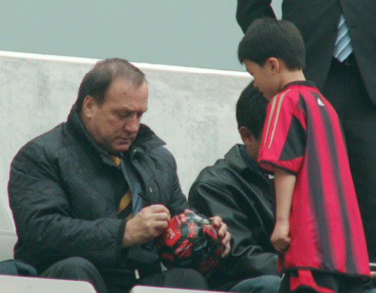 어린팬의 사인요청에 응하고 있는 아드보카트 감독 ⓒ뷰스앤뉴스