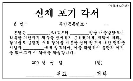 인터넷에 떠돌아다니는 신체포기각서.ⓒ민주노동당 경제민주화운동본부