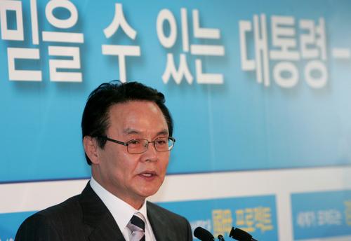 박근혜 선대위의 홍사덕 선대본부장이 이명박 전시장의 직접 사과를 촉구하며 이 전시장을 맹비난하고 나섰다. ⓒ연합뉴스