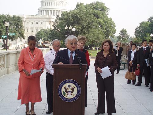 의회 앞에서 기자회견을 갖고 있는 마이크 혼다 의원 ⓒ 혼다 의원실