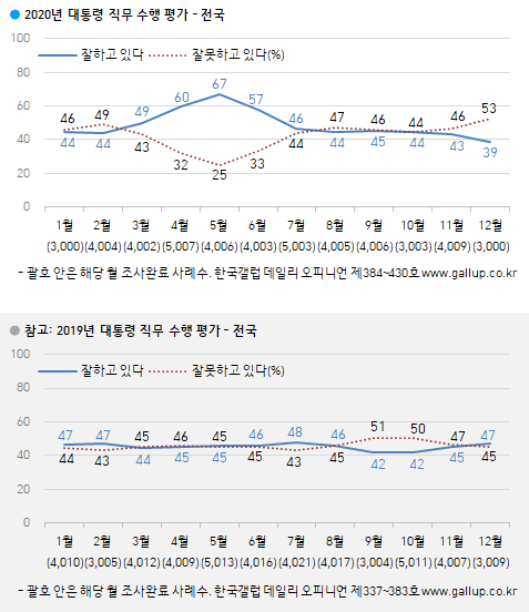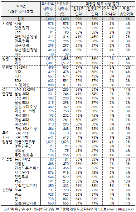 <한국갤럽> 12월 분석, 文집권후 최대 '적신호'