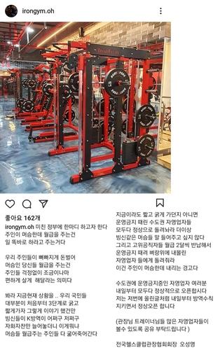 헬스장아니고 재활센타라고 하던데~~ 집합금지대상업종이 아니란 얘기. 서로 어려운데 선동수준이네~