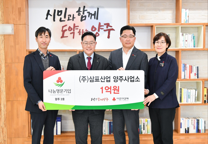 이날 양주시에 5천만원을 기부한 삼표산업은 지난해에도 5천만원을 전달, 총 1억원 기부를 통해 나눔명문기업에 가입했다.