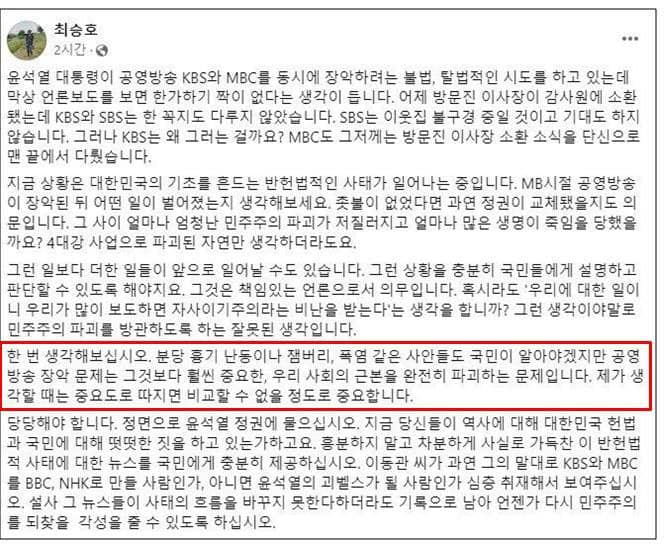 이곳에서 도배질하는 개딸류는 몰라도 상식과 이성적인 정상 사람이면 방송장악이라고 하는데 방송 3사 사장들이 정권이 방송장악 한다고 당하면 그만 둬야지 맞아 틀려? 최승호처럼 MBC사장들은 당시 무능 문재인정권이 정권이 방송장악했다는거 스스로 자백하는거야? 이런 ㅂㅅ들이 언론인 행세하네그려