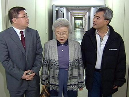 아주대 병원에서 치료를 받고 나오는 김동관(오른쪽), 동관이 모친 김영순 여사, 그리고 전성. ⓒMBC