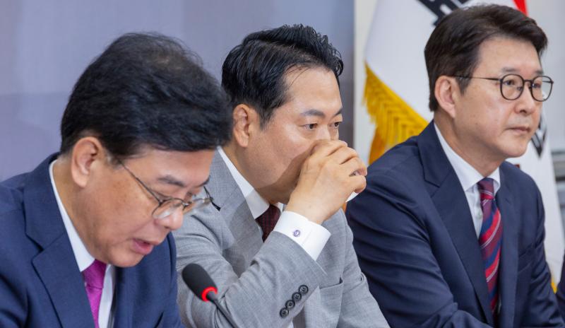 송언석 원내대표는 이날 오후 의원총회에서 민주당의 특검 기간 연장에 대해 "내년 지방선거까지 야당 탄압 정치 공세를 이어가겠다는 비열하고 정략적인 의도가 아닌가 한다"며 "지금, 이 순간까지도 우리 동료 의원들에 대한 특검의 압수수색과 소환 조사가 계속 이어지고 있다"고 반발했다.