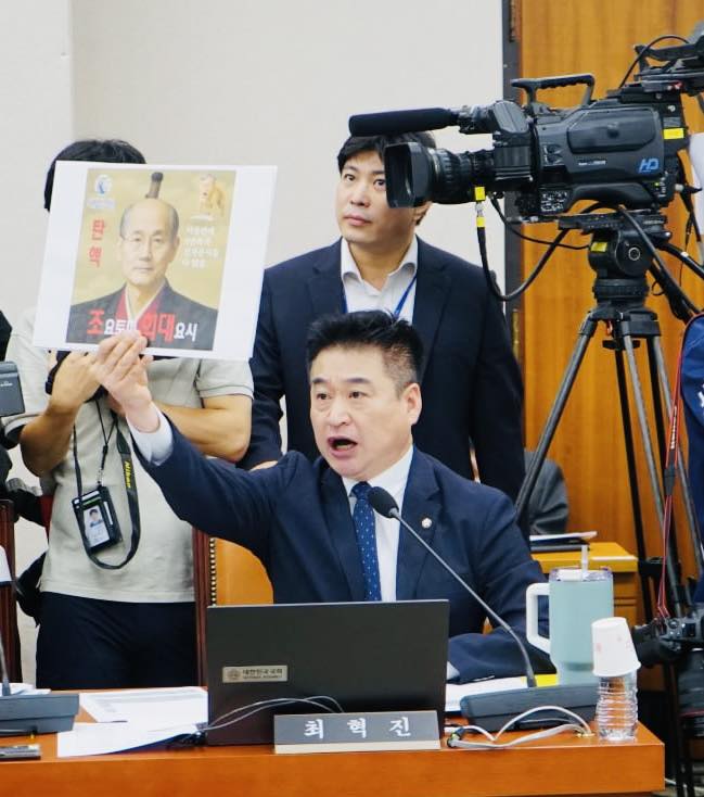 최혁진 의원은 전날 국감장에서 조 대법원장과 도요토미 히데요시의 합성 사진을 들고 나와 "조희대를 윤석열 전 대통령에게 추천한 사람이 김건희의 계부 김충식이라고 한다. 제가 제보받은 내용"이라며 "김충식은 일본 태생이고, 일본 황실가와 깊은 인연이 있고 일본 통일교와도 밀접한 인물로 알려졌다. 이게 사실이면 김충식을 통해 일본 입맛에 맞는 인물을 대법원장으로 추천한 것"이라며 친일 의혹을 제기해 물의를 빚었다.