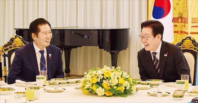 이 대통령은 이날 저녁 6시부터 2시간 40분 청와대 본관에서 가진 민주당 지도부와의 만찬에서 이같이 물었고, 이에 정청래 대표는 “우리는 모두 친명이고 친청(청와대)입니다” 라고 응수하자 이대통령은 파안대소했다고 박수현 수석대변인이 서면 브리핑을 통해 전했다.