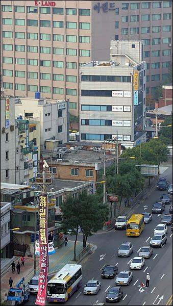 뷰스 이랜드 본사가 내려다보이는 곳에 올라서있다. 심정이 어떤가