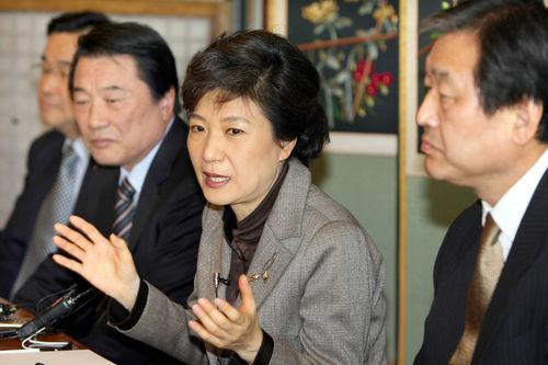 김병호 의원(왼쪽 두번째)이 한나라당 경선 당시 박근혜 전대표와 함께 기자회견을 하고 있다. ⓒ연합뉴스