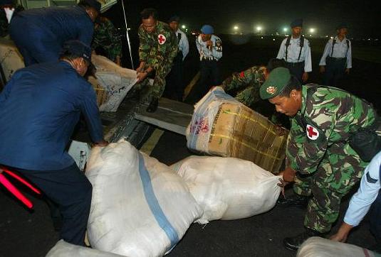 지진 발생 직후 인도네시아 군이 구호물자를 수송하고 있다ⓒAP