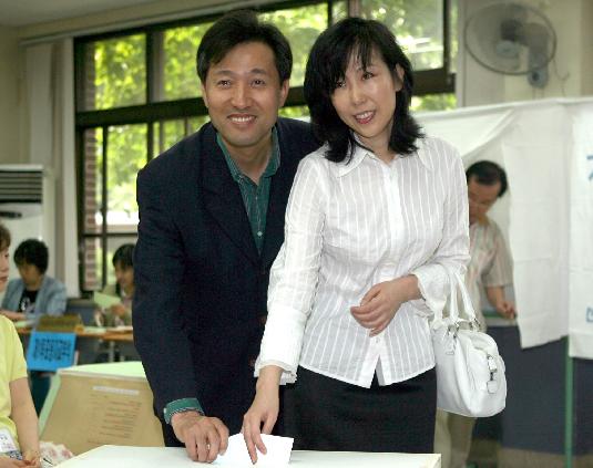 31일 서울 대치동 휘문고등학교에 마련된 투표소에서 오세훈 한나라당 서울시장후보 내외가 투표하고 있다.ⓒ연합뉴스
