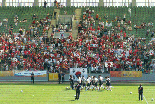 2006 독일월드컵 우리 국가대표팀은 16강 진출을 위해 훈련중인 우리 대표팀은 지난 10일 훈련장인 레버쿠젠 바이아레나 구장을 독일현지 교민은 물론 모든 시민들에게 공개하는 공개훈련을 가졌다.
