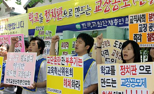 교장공모제를 둘러싼 갈등은 혁신위 외부에서도 전면 충돌 양상으로 치닫고 있다. 교총은 기존의 연공서열제를 폐지하는 교장공모제 도입 자체를 전면거부하며 거리로 나섰다.