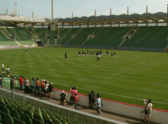 선수단이 경기장에 들어서자 바이아레나 경기장의 보안요원 등 관계자들이 어제의 승리를 축하하는 의미의 박수를 쳐주며 선수들을 맞이했다. 선수들은 센터서클 부근에서 아드보카트 감독으로부터 훈련에 관한 간단한 지시사항을 들은 이후 가벼운 런닝으로 훈련을 시작했다. 이후 6:6 미니게임을 통해 좁은 공간에서의 볼처리와 문전에서의 예리함을 가다듬는 훈련을 진행했다.