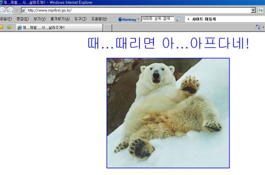 또한 눈위에서 손을 휘젓는 백곰의 사진과 함께 "때...때린면 아...아프다네"라는 글이 적혀 있다.