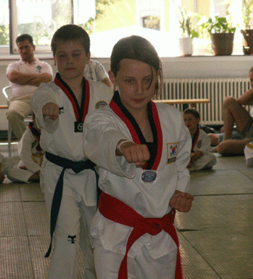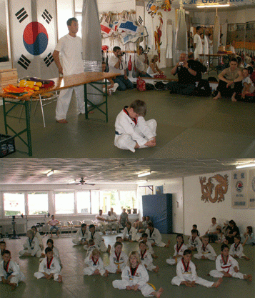태권도의 기본품세와 격파, 자유대련의 순서로 진행된 심사를 마친 수련생들은 긴장속에 심사통과여부 결정을 기다렸고, 마침내 심사에 통과해 새로운 색깔의 도복띠를 받은 수련생의 얼굴에는 뿌듯한 미소가 흘렀다.