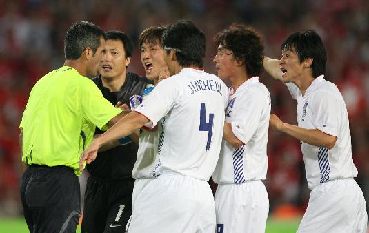 스위스 출신인 제프 블라터 국제축구연맹(FIFA) 회장을 의식한 듯한 이같은 심판의 이상한 편파판정에 2002년 한일월드컵 신화를 재현하려는 한국팀은 마지막 희망을 살리지 못한 채 허무하게 무너져야 했다.