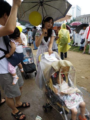 우중에도 불구하고 주부들이 유모차를 끌며 서울광장에 나타나자 시민들은 박수를 치며 환호하기도 했다. 이날 전국농민회총연맹은 집회 참석자들에게 무료로 갓 따온 싱싱한 수박을 나눠주기도 했다.