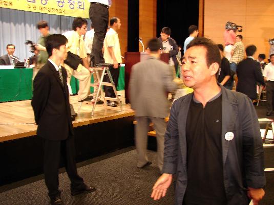 이에 따라 범국본 관계자들은 “지난 1차 협상때와 마찬가지로 정부 측의 논리를 찬성하는 진영만을 내세운 반쪽 공청회에 불과하다”며 “정부 측이 차후 공정한 절차를 거친 공청회 개최를 약속할 때까지 이곳에서 항의를 계속할 것”이라고 밝혔다.
