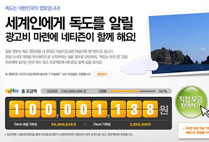 역시 한국 네티즌! '독도광고비 후원모금 1억원' 달성