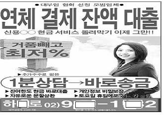 금감원은 최근 무등록 대부업체들이 등록 대부업자로 가장하거나 금융소비자를 현혹하는 광고문구를 사용하는 방법으로 대부광고를 실시하고 있다며 각별한 주의를 당부했다.