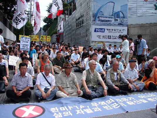 노동.농민.학생 등 각 분과 대책위 소속 회원 80여명이 참석해 진행된 결의대회에서 참가자들은 각계각층의 연대발언을 통해 “반드시 밀실에서 졸속으로 진행되는 FTA협상을 저지하겠다”고 선언했다.
