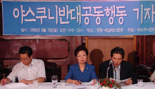 야스쿠니반대공동행동은 7일 서울시 중구 정동 세실레스토랑에서 기자회견을 열고 야스쿠니 무단 합사자 피해 유족과 한.중.일 3국의 시민단체 회원, 유골발굴 작업에 나선 대학생 등으로 구성된 ‘평화통신사’ 2백여명이 오는 11일부터 15일까지 야스쿠니 신사 주변에서 촛불집회, 가두행진을 벌여나갈 것이라고 밝혔다.