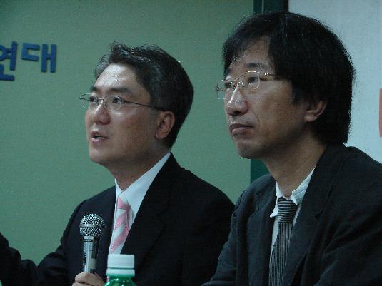 참여연대는 이 날 헌재 신임 재판관 인선기준 토론회에 앞서, 3기 헌재의 지난 6년간의 평가를 디딤돌, 걸림돌 판결로 대신했다. 임지봉 서강대 교수(왼쪽)와 참여연대 사법감시센터 소장을 맡고있는 한상희 건국대 교수. ⓒ뷰스앤뉴스
