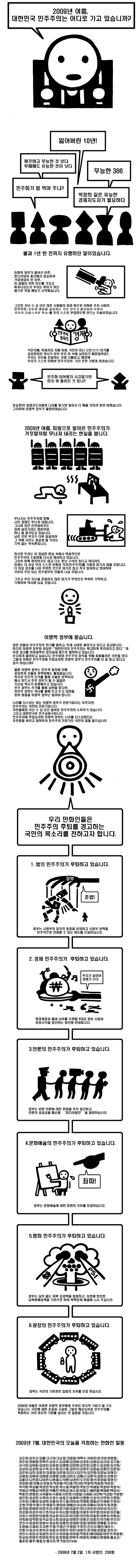 이들은 "이명박 정부가 들어선 이후, 한나라당이 총선에서 압승하여 거대여당이 된 이후, 이 말들이 어떤 의도를 가지고 퍼져나갔는지 우리는 머리가 아닌 몸으로 직접 깨닫기 시작했다"며 "2009년 여름, 피땀으로 쌓아온 민주주의가 거짓말처럼 무너져 내리는 현실을 본다"고 개탄했다.