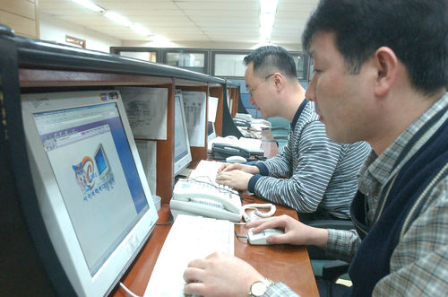 경찰청 사이버테러대응센터 직원들이 초유의 주요기관 동시 사이버테러의 원인을 찾기 위해 부심하고 있다. ⓒ연합뉴스