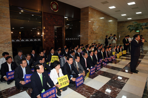 한나라 의원 30여명 본회의장 못 들어가, 민주당 결사저지