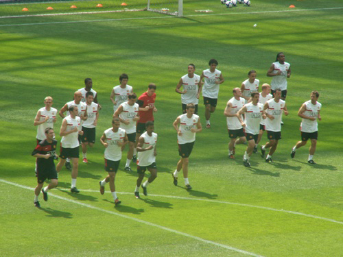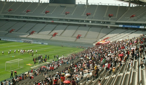 오전 10시가 조금 넘긴 시각 루니, 퍼디낸드, 베르바토프 등 평소 TV 화면에서나 볼 수 있던 세계적 축구스타들이 경기장에 모습을 드러내자, 관중석에 모인 수많은 관중들은 일제히 자리에서 일어나 환호했다. 대회 추최측에 따르면 이날 공개훈련장에 입장한 축구팬들은 모두 7천500여명으로 집계됐다.