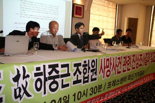 이와 관련 박석운 공대위 집행위원장은 “하중근씨는 경찰의 진압에 들어가기 이전에 분명히 멀쩡한 상태로 집회에 참석했다는 명백한 정황이 있다”며 “맨 손의 노동자가 경찰 진압 이후 피를 흘리며 죽어갔다면 이것은 명배하게 경찰의 집단폭행에 의한 사망”이라고 목소리를 높였다.