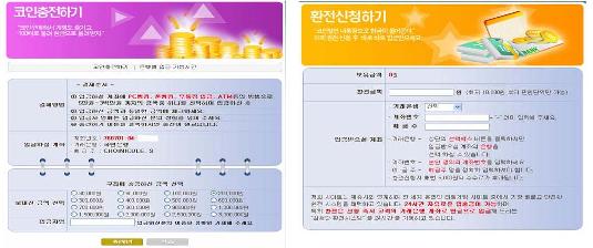 영국령 지브롤터에 본사를 두고 있는 한 인터넷 도박게임업체의 계좌이체 서비스 창. 이를 통해 게임머니의 충전 및 환전이 이뤄지고 있다.ⓒ중앙대 게임콘텐츠연구센터