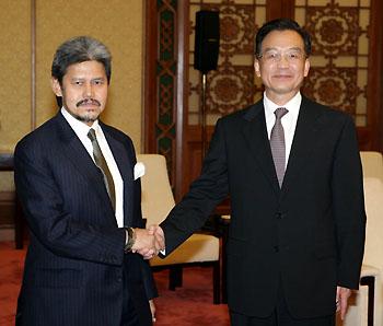 원자바오(오른쪽) 총리가 5일 모하메드 볼키아 나이의 외교부장관과 회담을 갖고 있다. ⓒ 중국 외교부