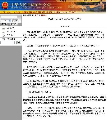 원자바오 총리의 유럽 5개 언론매체와 가진 공동 기자회견 내용을 소개한 중국 외교부 홈페이지 ⓒ 중국 외교부
