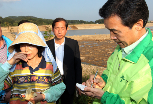 손학규 민주당 대표가 지난 5일 당대표 취임후 첫 행보로 4대강사업이 강행중인 여주군 양촌리를 찾아 피해 농민들의 하소연을 기록하고 있다. ⓒ연합뉴스 손 대표는 이렇듯 당대표가 된 후 상당수 국민의 '정권교체 욕구'를 자극하면서 뉴스메이커가 되는 데 성공했다. 하지만 이제 시작일뿐, 이것만 놓고 차기대선 구도를 운운하기에는 시기상조라는 게 일반적 평가이기도 하다.
