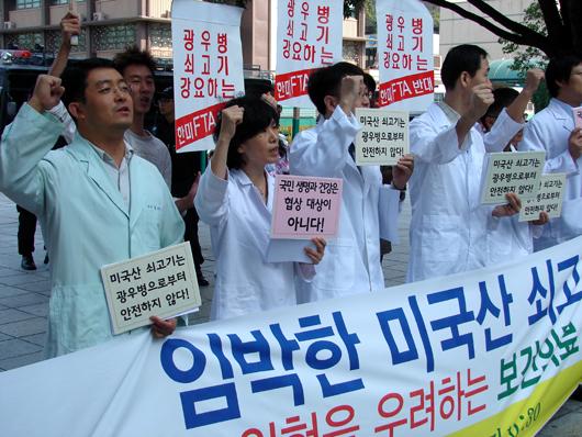 또 의료인들은 정부가 국제수역사무국의 기준을 들어 30개월 미만인 소의 살코기가 광우병에 안전하다는 것에 대해서도 신뢰할 수 없다고 반박했다.