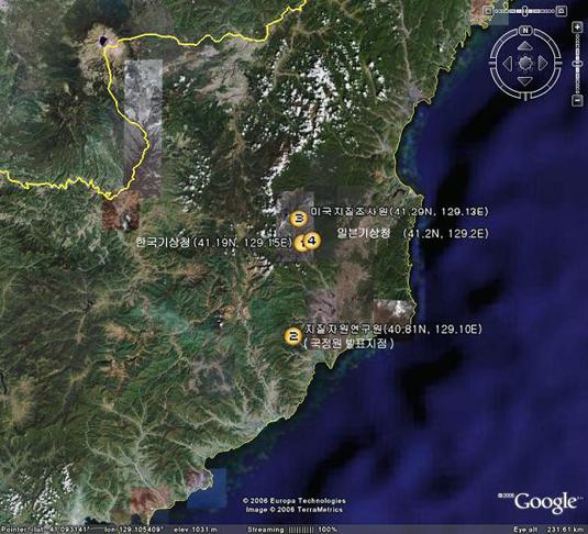 북한 핵실험 장소로 미국 지질조사국은 북위 41.29도 동경 129.13도(함북 길주군 풍계리), 일본 기상청은 북위 41.2도 동경 129.2도(함북 길주군 부근)를 추정하고 있다. 반면 한국 기상청은 북위 41.19도 동경 129.15도(함북 길주군 북서쪽 30km 지점) 지점을 추정, 우리 정부가 공식입장으로 발표한 한국 지질자원연구원의 북위 40.19도 동경 129.10도(함북 화대군 서북서쪽 15.5km, 김책시 상평리) 지점과 큰 차이를 보이고 있다는 것.